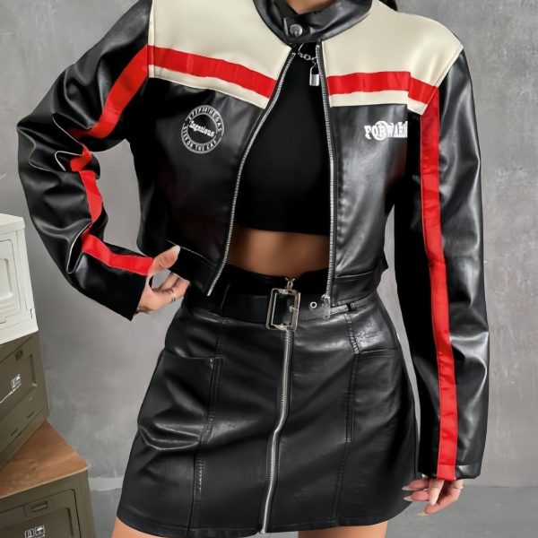 Striped Zipper Coat For Women